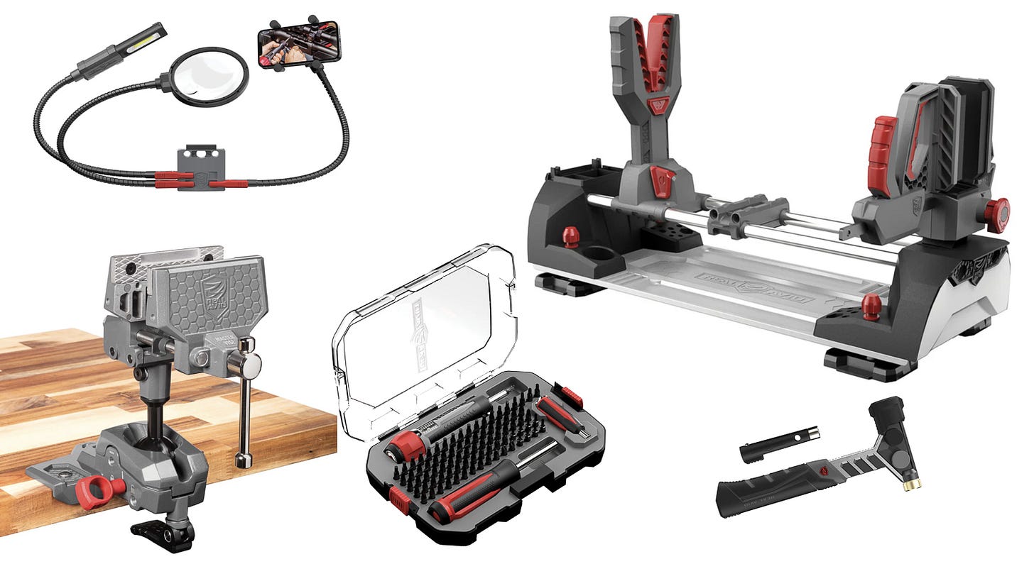 While I was at SHOT Show I visited the Real Avid booth and put together an order of the gear I needed inside the Shooting Shack. Not only do I want to be able to shoot and do some load development, I also wanted to be able to clean guns, mount optics, install triggers and other accessories, and conduct maintenance.